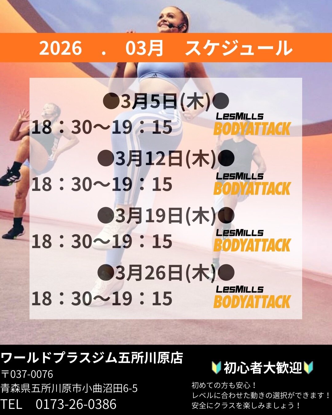対面レズミルズレッスン3月スケジュール【BODYATTACK】