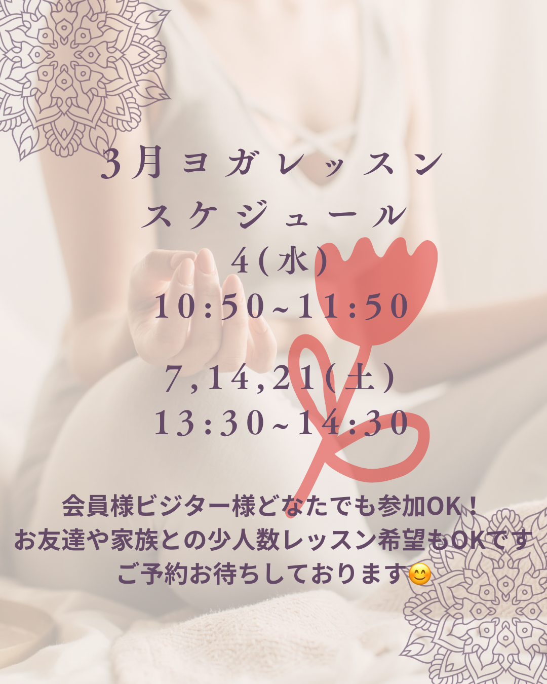 対面ヨガレッスン3月スケジュール