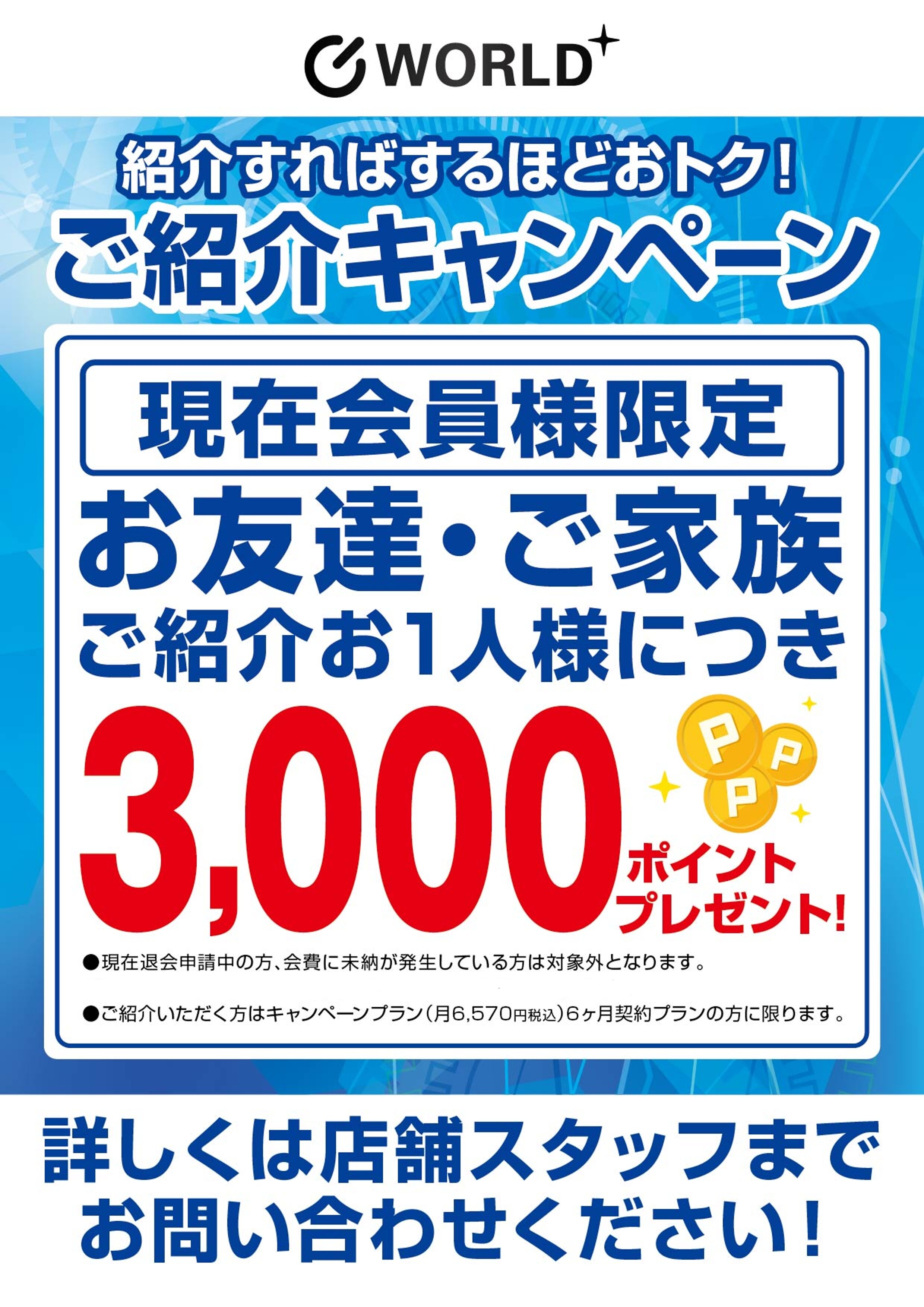 紹介で入会された会員様には3000ポイント+初月会費無料をプレゼント!