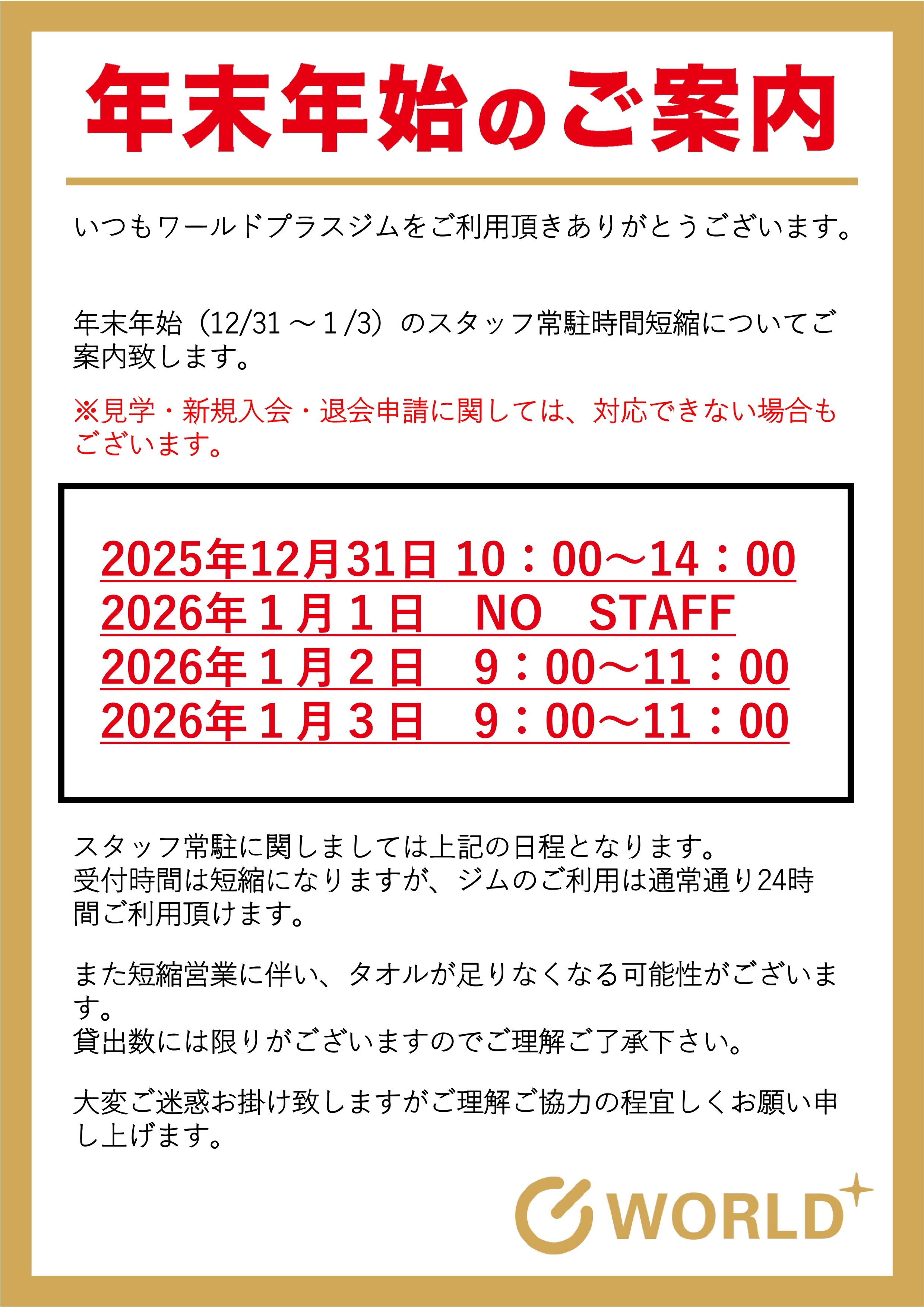 詳しくは店舗一覧から該当の店舗をご確認ください。 - スタッフ受付時間しか施設の利用ができないのですか?