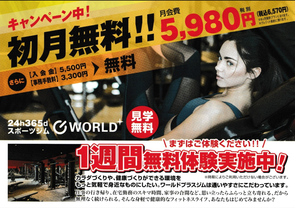 以前ワールドプラスジムにご入会されていた方限定!2ヶ月無料キャンペーン実施。