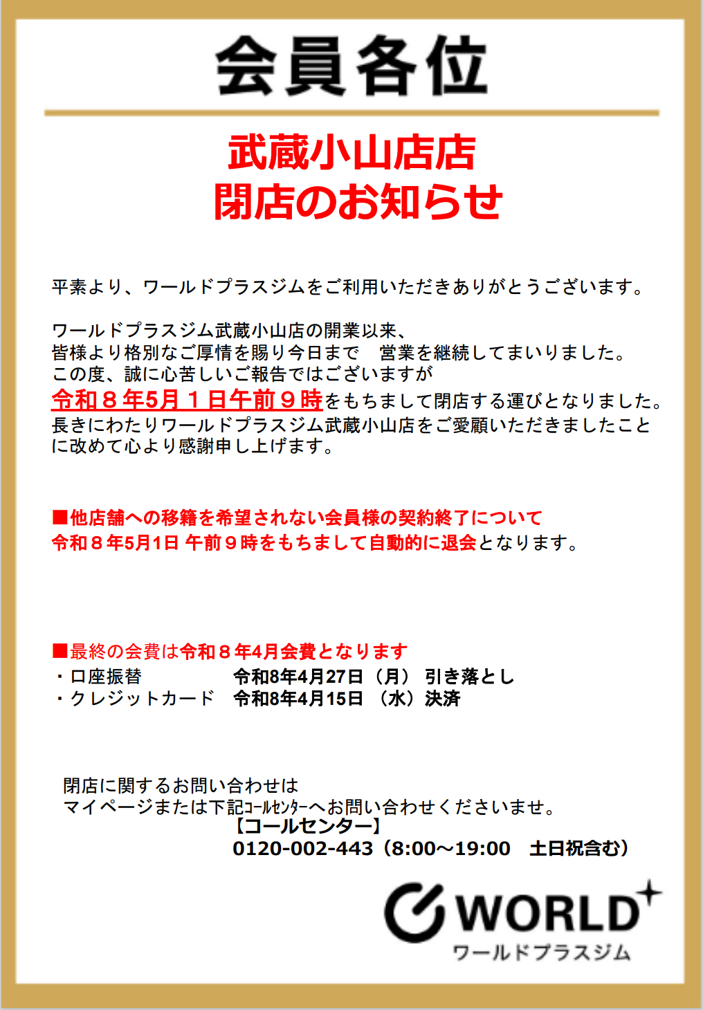 詳しくは店舗一覧から各店舗のページをご確認いただき、直接お問い合わせください。 - 休会したい時は、どうすればよいですか?
