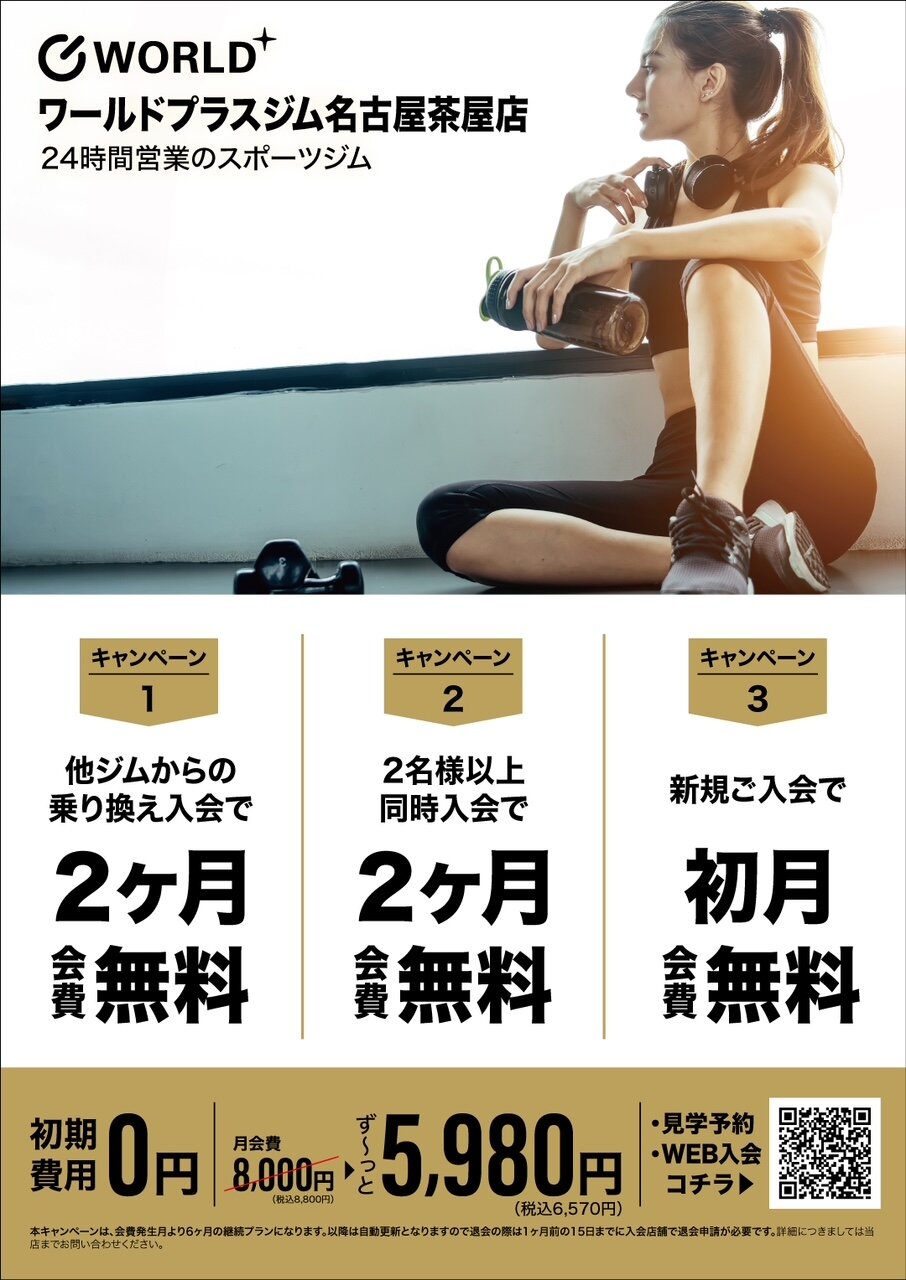 【他ジムからの乗り換え限定】2ヶ月無料プラン ※ワールドプラスジムからの乗り換えは不可
