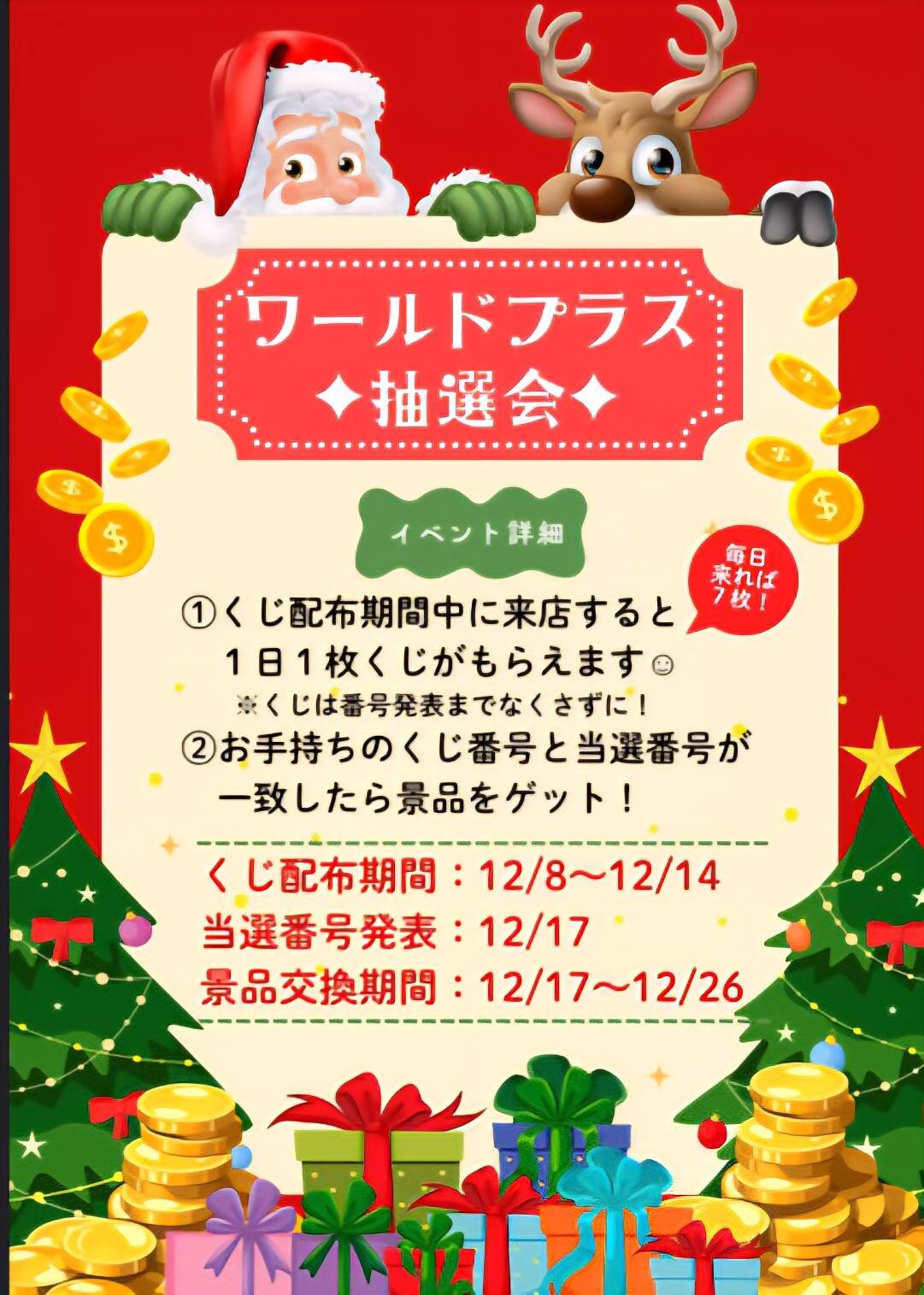 ☆2025年☆大感謝祭イベント! 12/8(月)~ワールドプラス抽選会を行います!