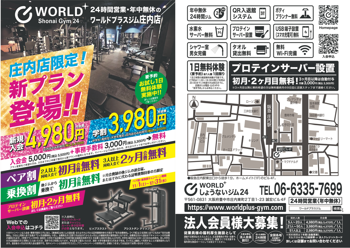 ワールドプラスジム庄内店から、地域の皆さまにもっと気軽にフィットネスを楽しんでいただける
