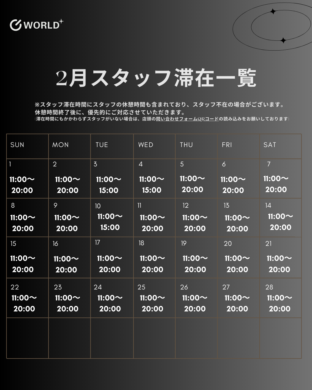 【2026年2月|スタッフ滞在スケジュールのご案内】