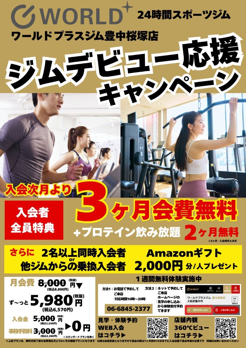 ・全員にプロテインサプリメントサーバー入会初月+次月飲み放題!